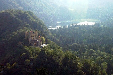 View of Hohenschwangau and Lake Alpsee from Neuschwanstein